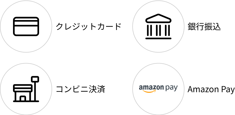 各種クレジットカードや銀行・コンビニ決済など多様な決済手段を利用できます